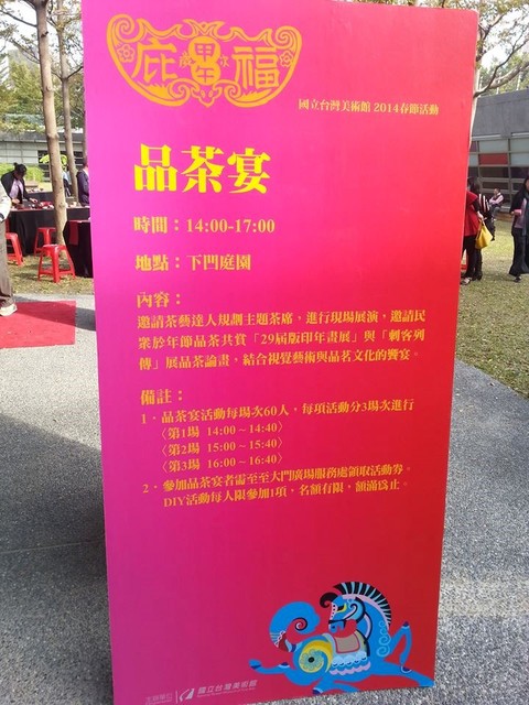 農曆新年期間,我與家人偶然到訪國立台灣美術館。除了看藝術品,發現當日美術館旁搞了一個品茶宴。