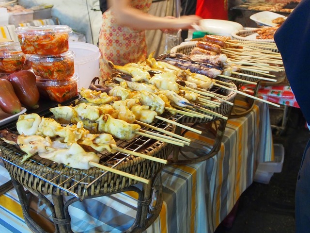 曼谷很多地方都有這種夜市,記得好多家的串燒都很好吃