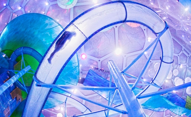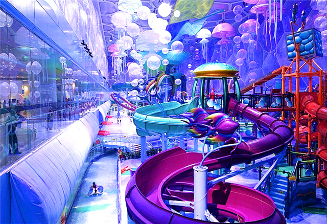 08年北京奧運後,水立方已經被改建成全亞洲最大的室內主題水上樂園,,位列CNN評選全球十二大最佳水上樂園。無論是水上滑梯、水上冰山,還是水上自行車,11個滑道和游樂設備皆採用了半透明的材料來製造。置身水立方淡紫色的透明泡泡下,連玩樂時,也感覺如夢似幻。