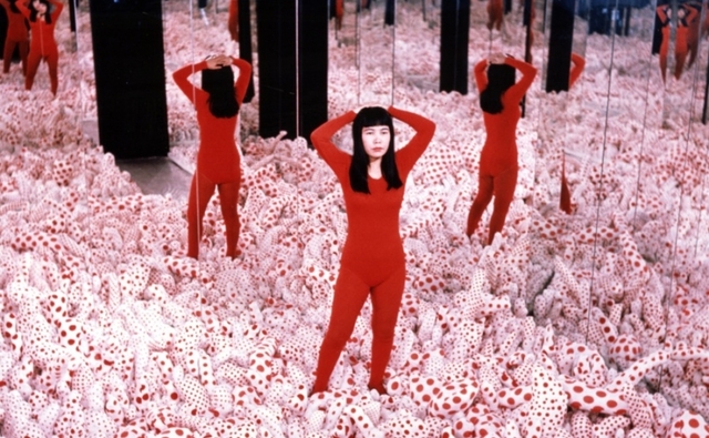 有否見過白底紅點、圓點花紋的藝術作品呢?那麼你可能已接觸過草間世界了。至今已85歲高齡的草間彌生,被稱為「前衛女王」,又譽為二十世紀最偉大的藝術家之一,日本的「教母級」藝術家。她以視覺迷幻的網紋與圓點蜚聲國際,用色華麗大膽,配上高度對比的紋樣,在不同的媒介如繪畫、雕塑、錄像、行為、裝置與文上中,彷似無限蔓延,置身其中顛覆你對圓點的想像。