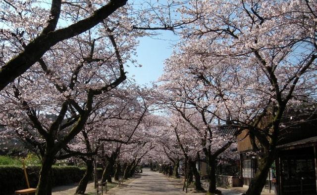直線500米長的福岡秋月杉之馬場,散步道兩旁植了200株櫻花樹,染井吉野櫻和八重櫻的枝葉繁茂得交織成一條粉紅櫻花隧道,非常唯美。每逢4月的第1個星期日都會舉行秋月春季廟會。