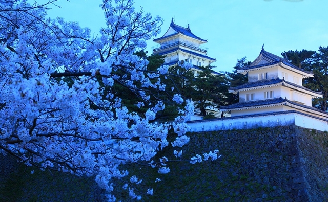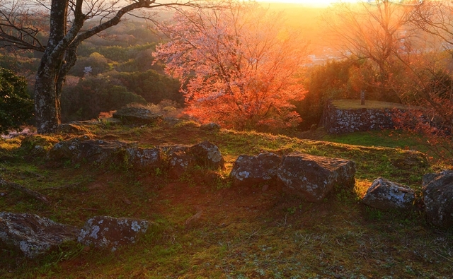 岡城遺跡是「日本賞櫻名所100選」,也是名曲「荒城之月」的靈感,以楓葉之美和櫻花見稱。斜陽下,城牆舊跡襯著櫻花蔓延的花椏,流露令人感嘆的蒼涼美,唯美非常。