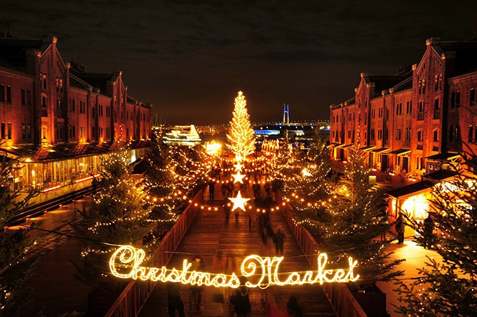 云云景点中,具有过百年歷史的红仓库,可谓横滨最具标志性的地标,至圣诞节当日,每天下午4时至10时灯饰就会亮起,映照两座仓库的红砖外墙。充满德国风味的圣诞市集位处空地,杉树和木屋摊档亮满LED灯,尽可一尝德国肠、年轮蛋糕、香料酒等特色食品。当然少不了跟广场中央十米高的圣诞树以及不定时出没的圣诞老人留倩影吧。