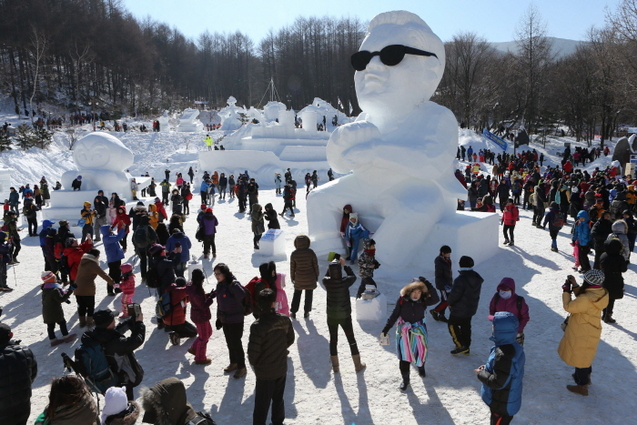 去年的大型雪雕作品就有以"Gangnam Style"一曲声名大噪的PSY,引起一场疯狂拍照水十十十月。