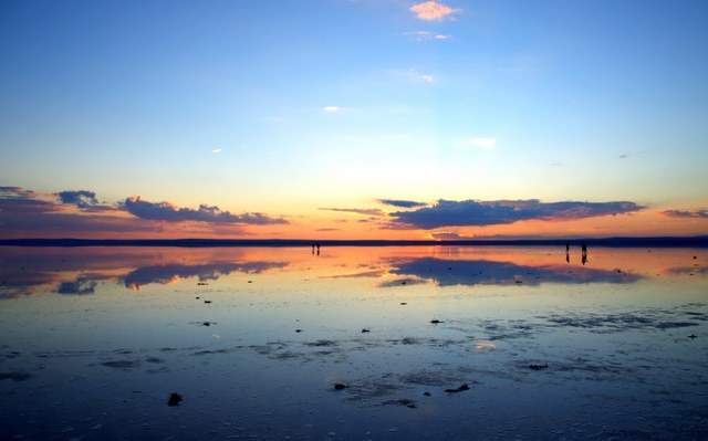 到底「天空之鏡」是如何形成的呢?故名思義,鹽湖就是指含鹽度比起海水還要高的湖,多數位於朝旱或半乾旱的氣候高原地區和地型封閉的山谷。在這些條件下聚集於湖中的湖水在強烈的蒸發和少量的水份補充下,含鹽度比起一般的湖泊高出不少。這些鹽湖在水份較充足的季節水深亦不高,加上湖內礦物的結晶化加強了湖面的反射效果,因而讓湖面化成一片「天空之鏡」。