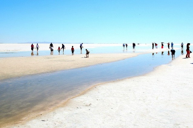 進入鹽湖的範圍,就是拿出相機盡情按下快門的時間了!圖茲湖的湖水隨著季節變化會展現不同的面貌,夏天湖面乾涸時會露出粉色的結晶,在冬天卻會變成一片蔚藍;全年湖水平均約有0.4米深,遊客可以無拘無束地在「天空之鏡」上行走,尋找最理想的拍攝角度。