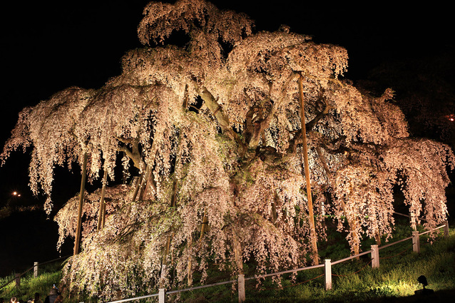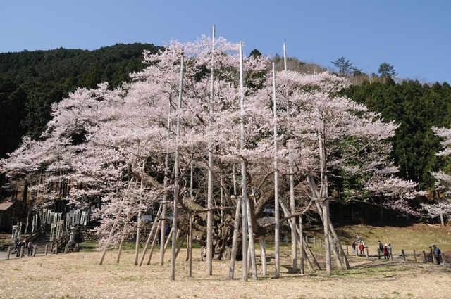 位于三春市的泷樱,属于红枝垂樱,已经屹立超过一千年。树高约十二米,树枝向四週伸展,开花时无数淡红的樱花有如瀑布泻下,风吹过摇曳生姿,在日本享负盛名。沿着三春水坝旁的山坡,游客可以于不同角度观赏这株千年古木。