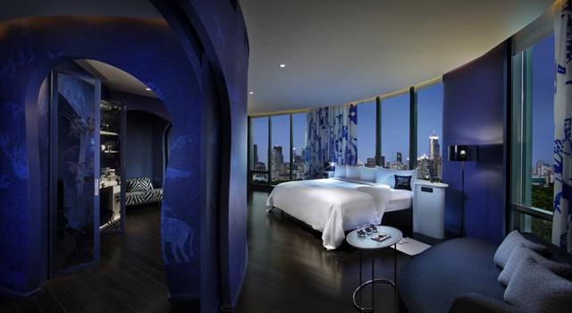 酒店内部以五元素为设计主题,金木水火土,分别由五位泰国最顶尖的设计师负责。每种设计风格的房间各据四层,例如13至16层的金、17至20层则以木元素为主题,各有特色,绝对能令人再三入住。