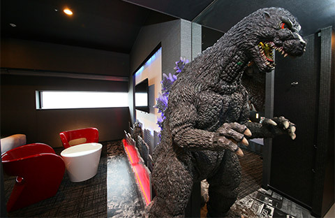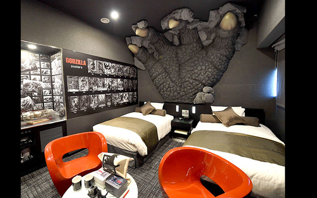 在酒店9楼,将会有6间Godzilla View Room单人房(吸烟房),可以直接在窗边望见哥斯拉的模样,索价15,000円一晚($978)。而哥斯拉主题房间只有一间(非吸烟),供一至两人住,面积32平方米,有哥斯拉人身高模型,更可与怪兽同眠,睡在怪兽的掌中,约49,800円一晚,亦即HKD3200。