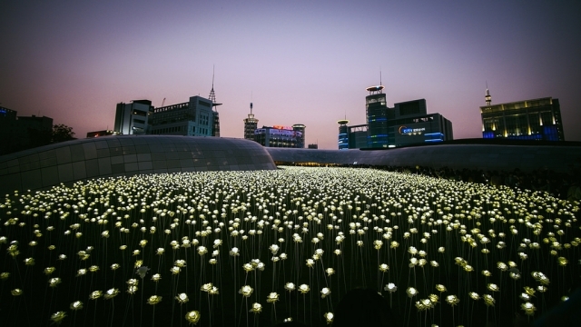 到东大门购物,这里是新的热门打卡拍照地点。浪漫得令人心醉的场景,试想想,与心仪对象/男女朋友/另一半,看着对方凝望花海,被幽幽微光照亮的脸庞,油然感到微小的幸福,若果在此表白求婚,一定无得输!