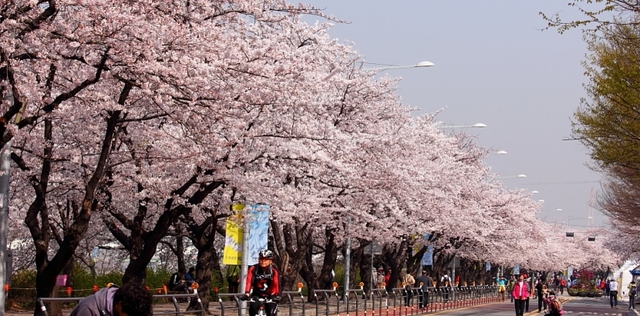 汝矣岛是韩国歷史悠久而又最具代表性的赏樱之地,拥有全韩国着名的「樱花隧道」。轮中路两旁满佈逾1400棵盛放中的樱花树,似锦繁花交织成长长的隧道,穿梭其中,抬头尽是漫天樱红花海,非常壮观。在花开季节园内还有杜鹃、连翘等不同花卉,百花齐放,绽放出一场盛大的花之庆典。此行并会游览传统的昌庆宫、南山韩屋村及现代化的摩天大厦63 Building。