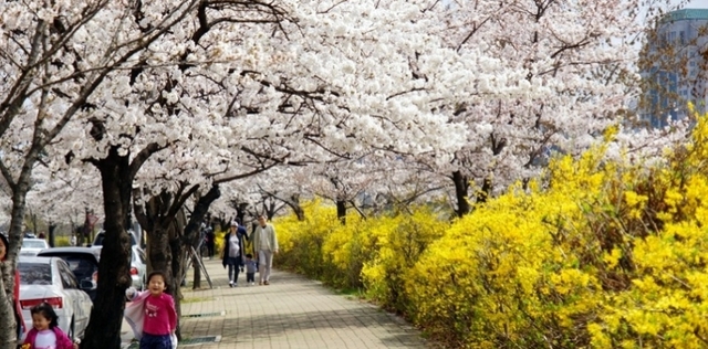 每年4月汝矣岛均会举行盛大的花卉节,在园内繁花盛开,包括杜鹃、连翘,王室杜鹃及各种春花,当然还有最着名的1,400至1,600棵樱花树,每年都吸引众多游人到来。